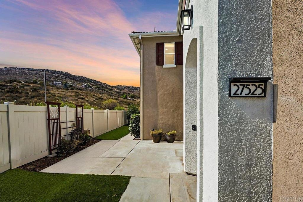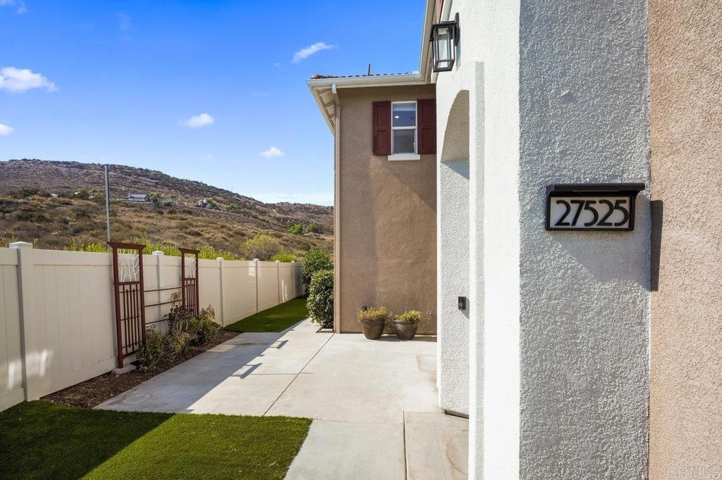 Bel Flora home in a perfect location! Enjoy expansive views of the hills and greenery from your spacious private end lot located in the highly sought after gated community of Bel Flora. Great investment opportunity! This 3bdrm 3 bath home, unique with no neighbors behind, features a loft upstairs with built in desk as well as a versatile space on the main floor for a private office office/playroom that could easily be converted to a 4th bedroom. Pass through the charming picket fence gate into the inviting front courtyard adorned with graceful shade trees and bunnies scampering by. As you enter, the flowing floor pan will lead you to the granite chefs kitchen with a window over the sink. Outside there is room for play and relaxation with manicured landscaping and 10k recently spent on new temperature controlled turf. The upstairs master retreat features soaking tub, rainfall shower head with edgeless glass enclosure, dual vanity sinks, new designer stone backsplash, walk in closet, and views of greenery year round. Upstairs laundry room with a window offers convenience and extra storage. Additional highlights include vinyl fencing, security cameras and wired indoor system, epoxy garage with storage, ceiling fans, electric switch fireplace with gas insert logs, surround sound, new toilets, and new light fixtures. This home even features smart home technology throughout with an AI sprinkler system, Nest thermostat, and Wi-Fi garage opener. New A/C and furnace installed in 2017. You will love this move in ready home in a truly lovely neighborhood! The community features secure gated access, private pool, spa, park with picnic tables, playground, exclusive RV parking lot, and serene walking paths. Close to Costco, Starbucks, Target, Home Depot, and just minutes away from beautiful wine country. Conveniently located near freeway access, bike and horse trails, walking distance from restaurants, medical offices, the promenade mall, and all that Murrieta and Temecula Valley have to offer! Zoned for nearby award-winning schools.