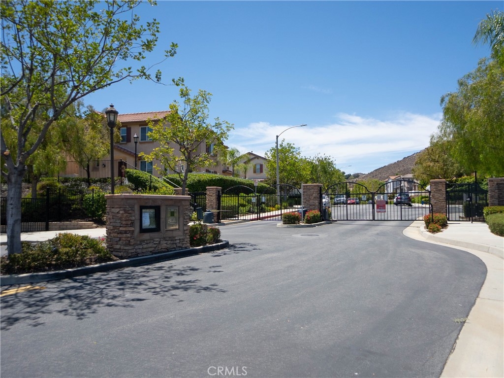 Beautiful Bel Flora gated community! This spacious home boasts 3 Bedrooms and 2.5 bathrooms.Plus a Den/Flex Room/Office downstairs. Kitchen is open with granite countertops and lots of cabinet space. Tile flooring through out the first floor. Stairs has new luxury waterproof and skid proof vinyl flooring. Living room has a fireplace for entertaining you guests. Upstairs has a built in desk area and upstairs laundry room for your convenience. Master Suite is large and has a large walk in closet. Master Bathroom has dual sinks with a soaking tub/shower. There is 2 additional bedrooms 1 has brand new carpet and a bathroom adjacent to the rooms with dual sinks.Garage has direct entry into the home and 2 car garage.Side yard and front porch area and yard. The HOA inc. Park,Pool,Spa and even offers secure parking for RV. Zoned for award winning Murrieta Schools and very easy freeway access to I15/I215, stores, shopping and many more ammenities.