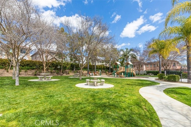Welcome to your dream home in the coveted Bel Flora gated community of Murrieta! Nestled on a prime, elevated, corner lot, this stunning residence offers a blend of luxury, functionality, and convenience. Pass through the charming picket fence gate into the inviting front courtyard adorned with graceful shade trees, setting the stage for the elegance and warmth awaiting within. This move-in ready gem boasts 3 bedrooms, 2.5 bathrooms, and a two-car attached garage. The heart of this home is its gourmet kitchen with granite countertops, an oversized island with a breakfast bar and generous storage space; the kitchen flows into the cozy family room with a fireplace and dining area, which makes this home perfect for family time or entertaining guests! Discover versatility with a private office or den on the main floor, perfect for remote work or as a playroom. This home features neutral paint colors, plantation shutters, ceiling fans and new flooring and baseboards downstairs. Ascent the open stairway and find an additional built-in office with plenty of storage, catering to your professional needs. Unwind in the spacious owner's suite with luxury carpeting, soft memory foam padding and a walk-in closet. The private bathroom features a dual sink vanity, granite countertops, separate soaking tub & new glass shower enclosure offering a serene retreat at day's end. Enjoy views of year-round green trees from your private bedroom space. Down the airy hallway, the second and third bedrooms have easy access to a bright bathroom with dual sinks, generous storage space and separate tub/shower/toilet. Step into the backyard oasis where the outside patio boasts natural quartz stone pavers, a patio cover and tranquil water fountain, creating an additional space for relaxation and entertainment. A lovely Meyer lemon tree produces perfect, juicy lemons several times a year and fragrant rosemary and lavender growing in the front enhance your home and kitchen. Enjoy the convenient community amenities including a refreshing pool and spa, BBQ area, picnic spot, park and playground, all just steps away! The convenience of residing within walking distance of award-winning Murrieta schools and shopping centers will enhance your everyday living. With easy access to the 15 and 215 freeways, commuting becomes a breeze. Don't miss the opportunity to make this Bel Flora beauty your forever home – schedule a viewing today and let your dreams come true!