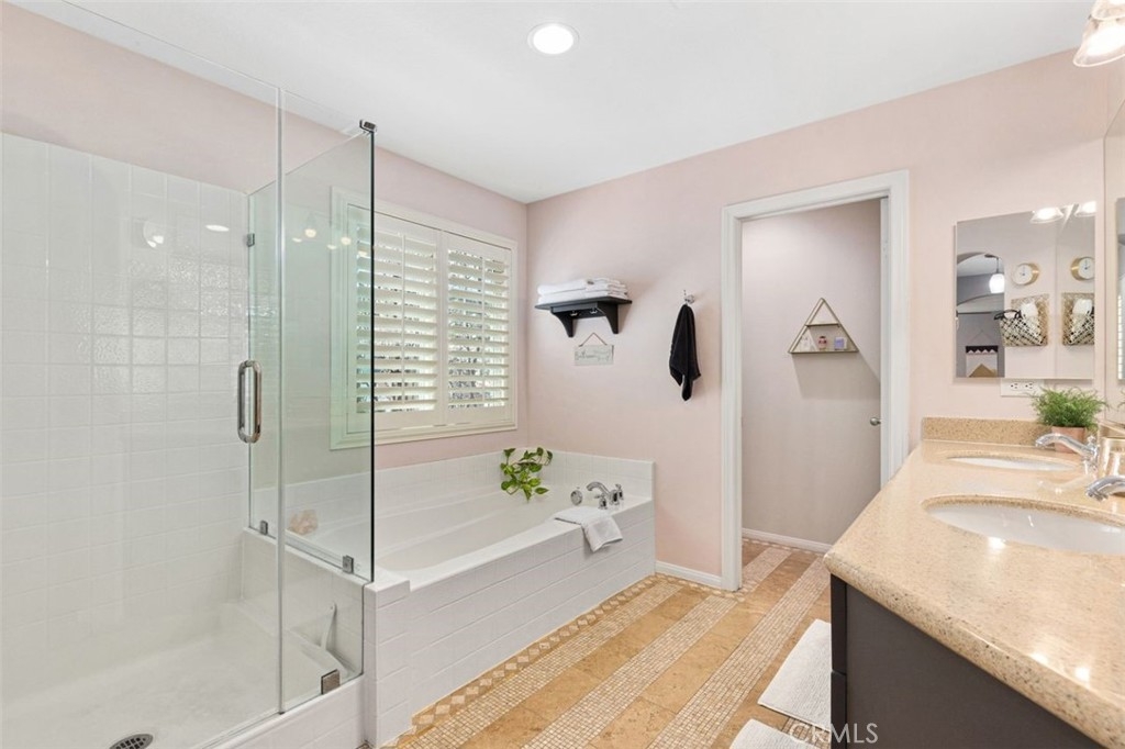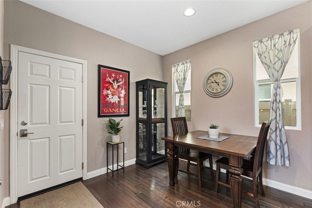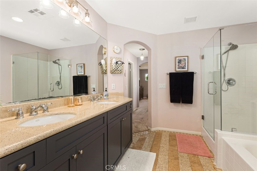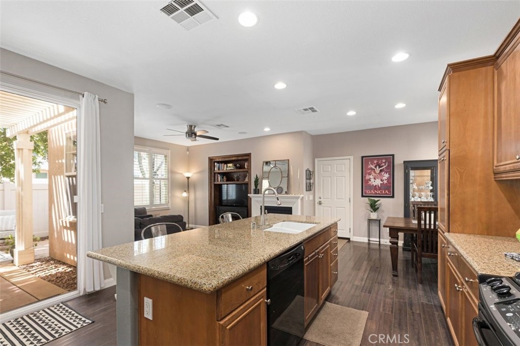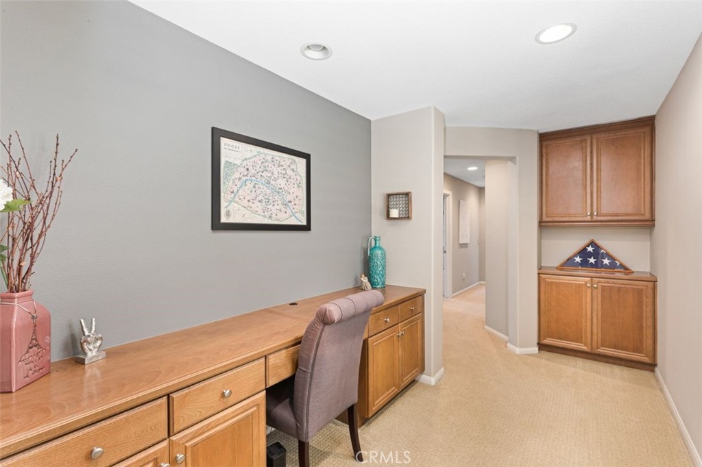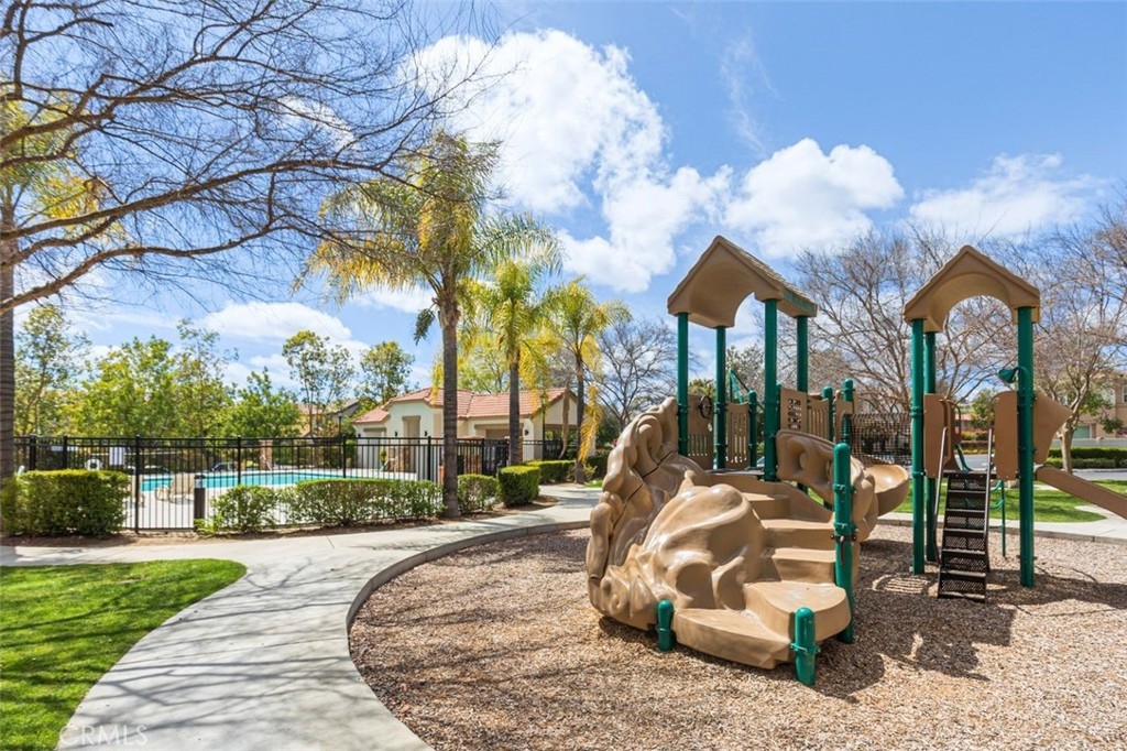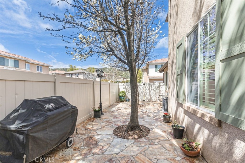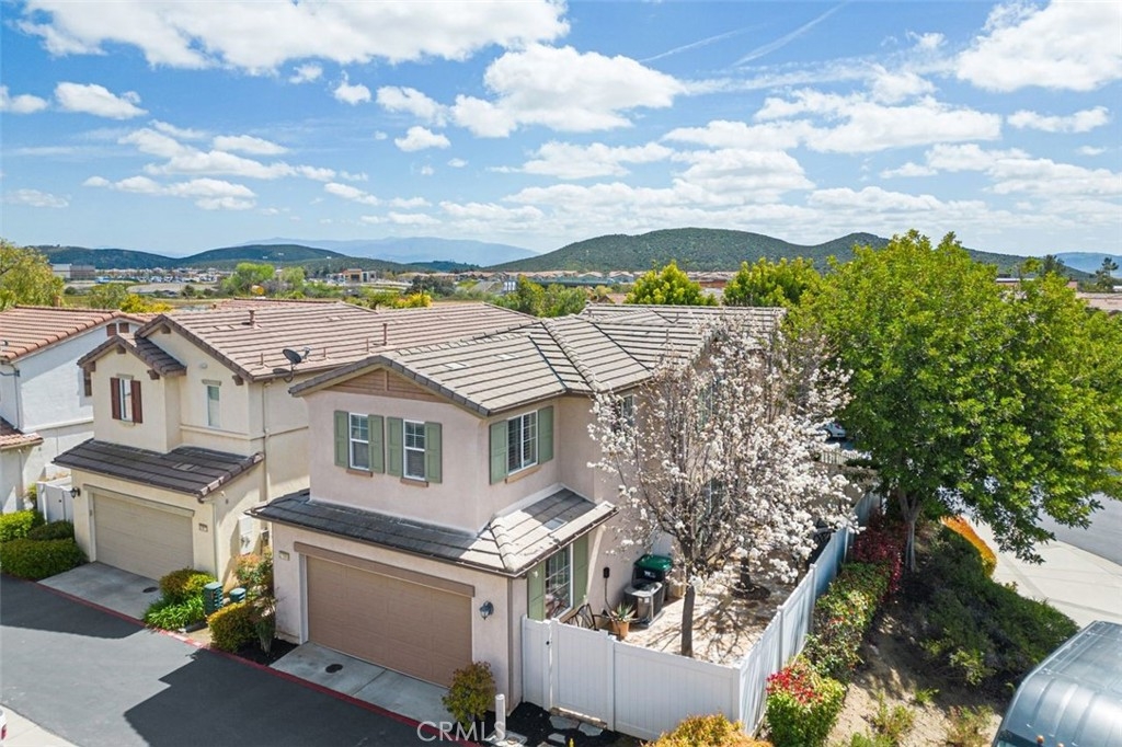 Welcome to your dream home in the coveted Bel Flora gated community of Murrieta! Nestled on a prime, elevated, corner lot, this stunning residence offers a blend of luxury, functionality, and convenience. Pass through the charming picket fence gate into the inviting front courtyard adorned with graceful shade trees, setting the stage for the elegance and warmth awaiting within. This move-in ready gem boasts 3 bedrooms, 2.5 bathrooms, and a two-car attached garage. The heart of this home is its gourmet kitchen with granite countertops, an oversized island with a breakfast bar and generous storage space; the kitchen flows into the cozy family room with a fireplace and dining area, which makes this home perfect for family time or entertaining guests! Discover versatility with a private office or den on the main floor, perfect for remote work or as a playroom. This home features neutral paint colors, plantation shutters, ceiling fans and new flooring and baseboards downstairs. Ascent the open stairway and find an additional built-in office with plenty of storage, catering to your professional needs. Unwind in the spacious owner's suite with luxury carpeting, soft memory foam padding and a walk-in closet. The private bathroom features a dual sink vanity, granite countertops, separate soaking tub & new glass shower enclosure offering a serene retreat at day's end. Enjoy views of year-round green trees from your private bedroom space. Down the airy hallway, the second and third bedrooms have easy access to a bright bathroom with dual sinks, generous storage space and separate tub/shower/toilet. Step into the backyard oasis where the outside patio boasts natural quartz stone pavers, a patio cover and tranquil water fountain, creating an additional space for relaxation and entertainment. A lovely Meyer lemon tree produces perfect, juicy lemons several times a year and fragrant rosemary and lavender growing in the front enhance your home and kitchen. Enjoy the convenient community amenities including a refreshing pool and spa, BBQ area, picnic spot, park and playground, all just steps away! The convenience of residing within walking distance of award-winning Murrieta schools and shopping centers will enhance your everyday living. With easy access to the 15 and 215 freeways, commuting becomes a breeze. Don't miss the opportunity to make this Bel Flora beauty your forever home – schedule a viewing today and let your dreams come true!