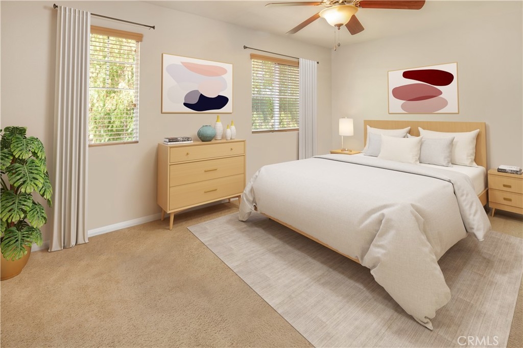 Welcome home to the highly sought after gated community of Bel Flora, in Murrieta. This 3 bedroom, 3 bath condo offers the largest floor plan available at 1727sqft of living space with a courtyard and 2 car attached garage. As you enter the home you are greeted by tall ceilings, tons of natural light, and fresh paint throughout. The main floor offers an office appointed with laminate wood floors, a half bath, open concept floor plan with a full dining area boasting large sliding glass doors to the private patio, tile flooring through the kitchen, a large family room featuring a roaring fireplace and laminate floors and huge kitchen. The kitchen features stainless steel appliances, granite counters, large kitchen island and beautiful cabinets with lots of storage. The second story features lush carpet throughout, a built in desk in the loft with linen cabinets, two large secondary bedrooms with ceiling fans, a secondary bath boasting dual vanity, soaking tub, shower combo and a laundry room. The master bedroom is appointed with a walk-in closet, windows for natural light, ceiling fan, and attached master bath updated with granite counters, soaking tub, standing showers, and tile floors. The meticulously maintained yard was just upgraded with turf, riverwalk and fresh mulch and features a built in BBQ with a sink perfect for entertaining. Located off the 215 across from target in the Murrieta school district. Community features a Pool, Spa, BBQ area, Playground, and Tot Lot.